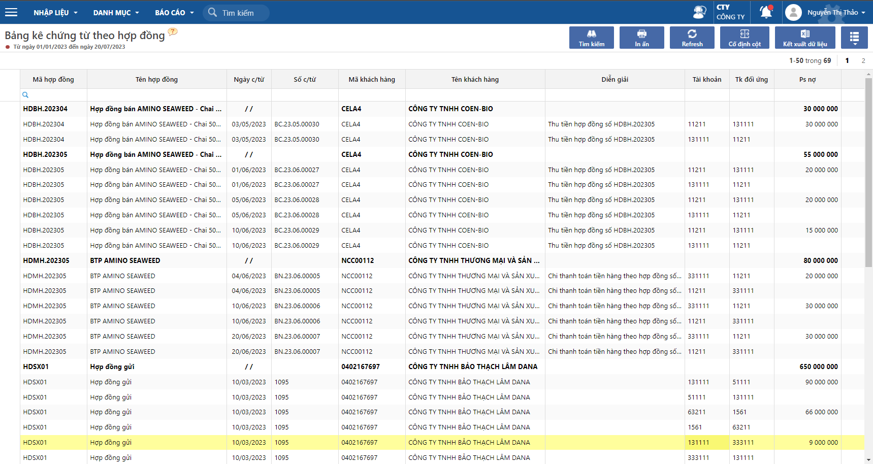 # Bảng kê chứng từ theo hợp đồng