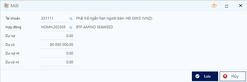 Dùng để cập nhật số dư cho các tài khoản cần theo dõi chi tiết theo hợp đồng trước khi sử dụng chương trình.