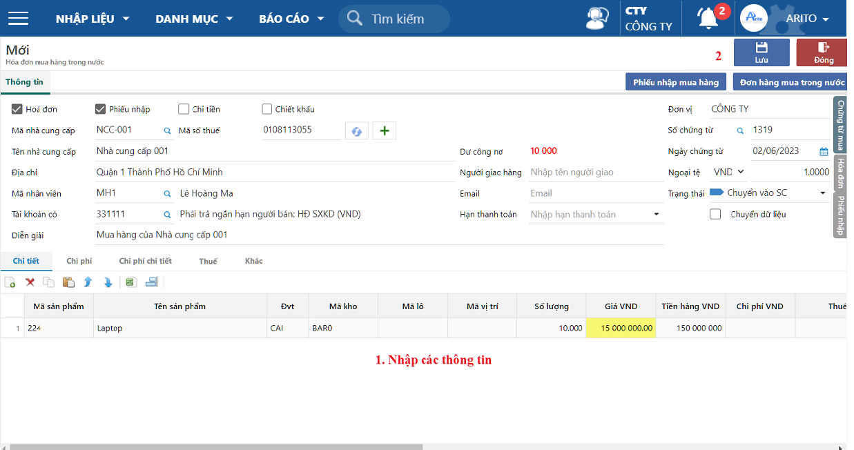 **Bước 3:** Nhập các thông tin trên phiếu và nhấn **Lưu.**