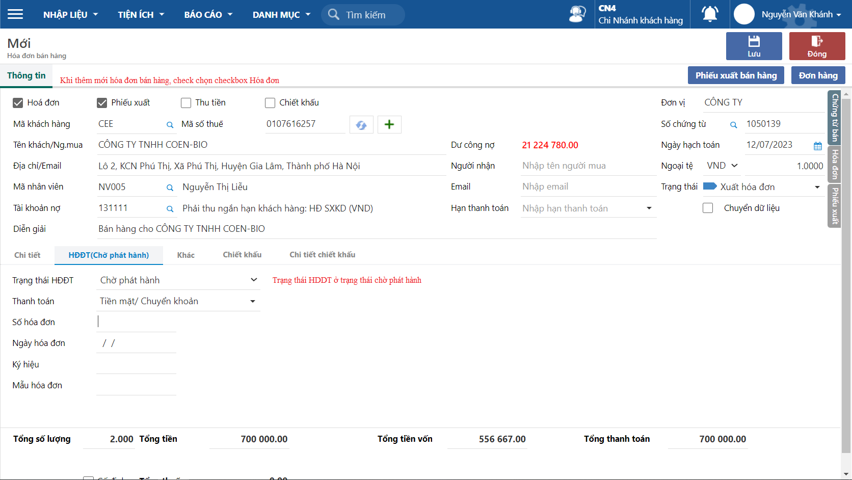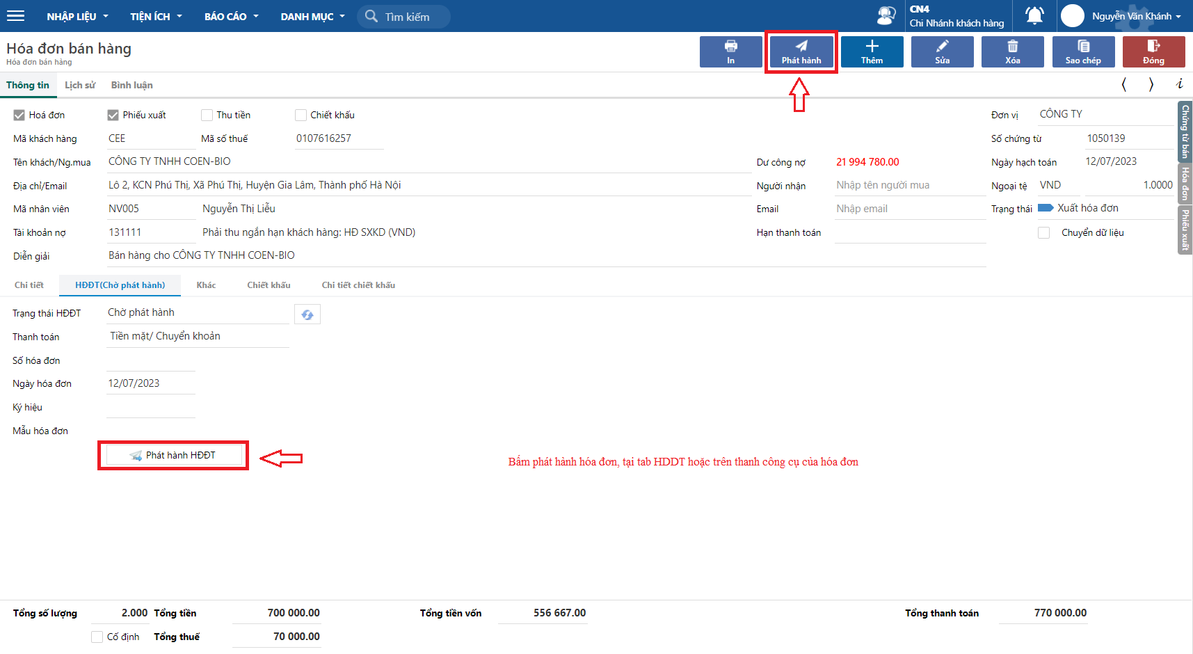 ### Phát hành hóa đơn