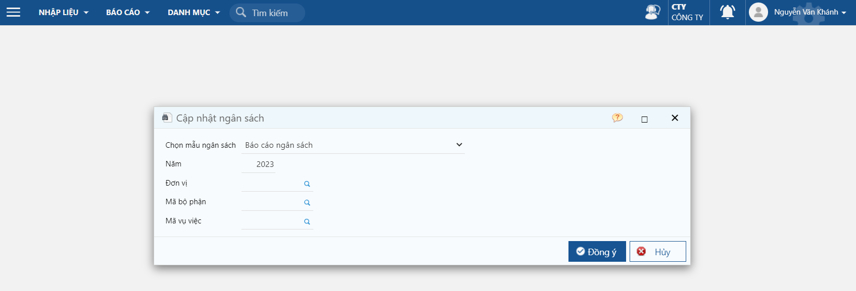 * Năm: chọn năm cần lập ngân sách