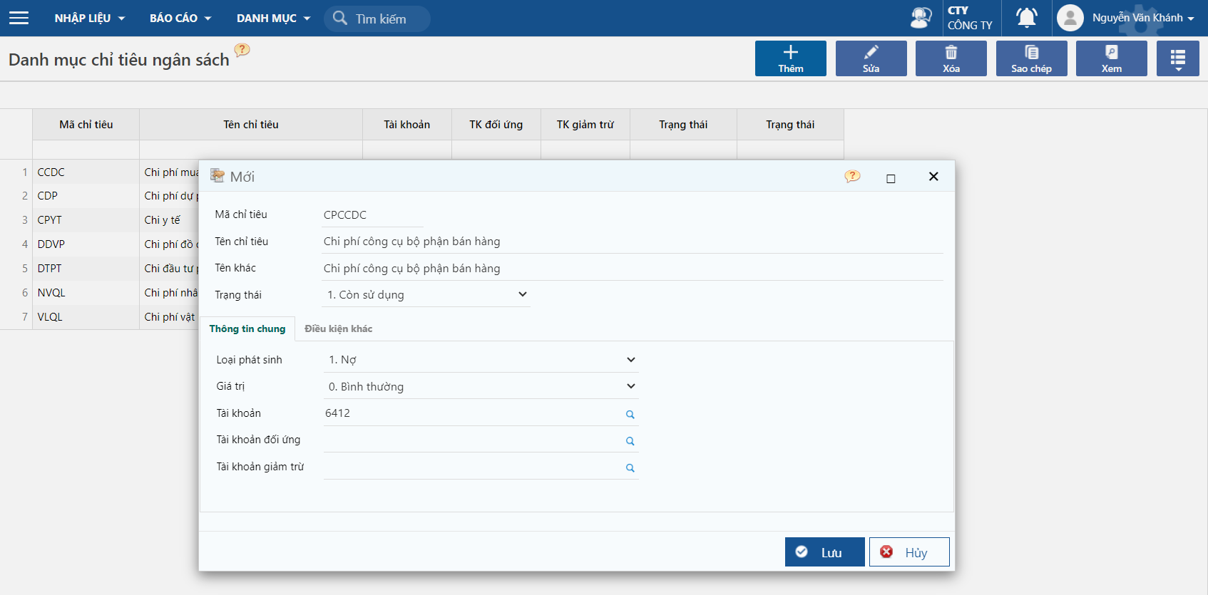 * Nhấn **Lưu** để lưu lại chỉ tiêu.