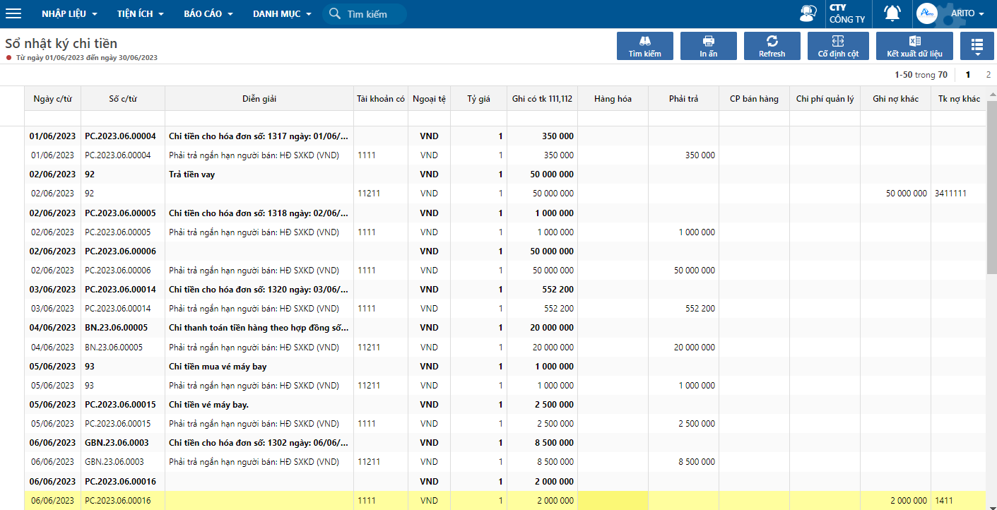 ## Sổ nhật ký chi tiền