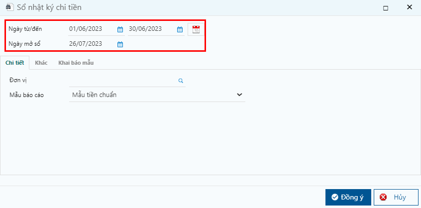 * Ngày mở sổ: ngày thực hiện xem sổ, hiển thị trên mẫu in báo cáo.