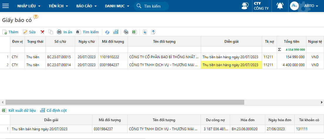 Đây là tiện ích sử dụng trong quy trình bán hàng – thu hồi công nợ. Người dùng có thể thu tự động cho mỗi hóa đơn bán ra để xử lý thu tiền và cấn trừ công nợ cho các hóa đơn đó.