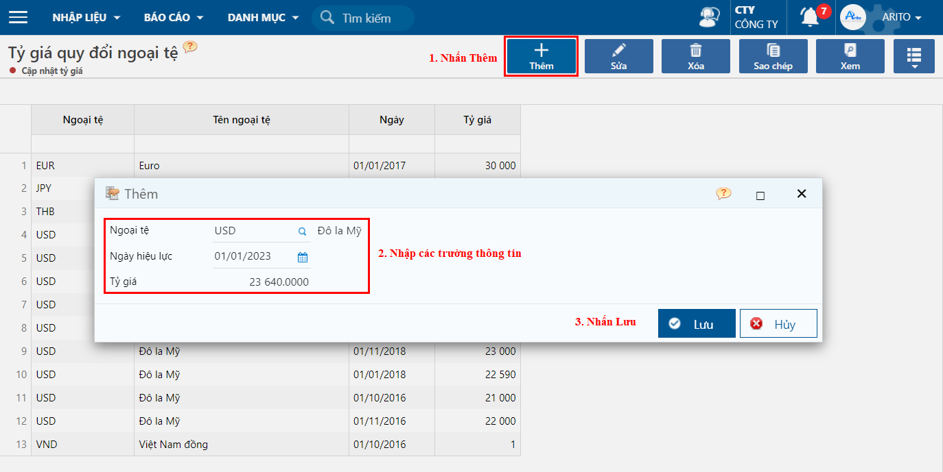 Đường dẫn: ***Danh mục/ Đối tượng/ Tỷ giá quy đổi ngoại tệ***