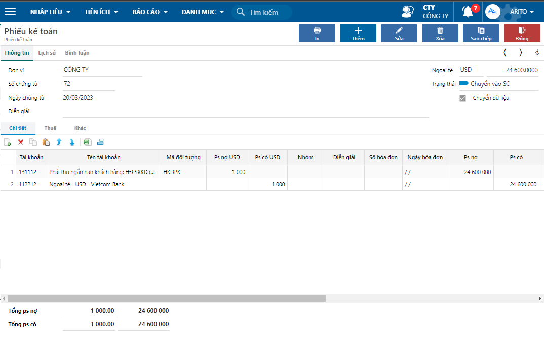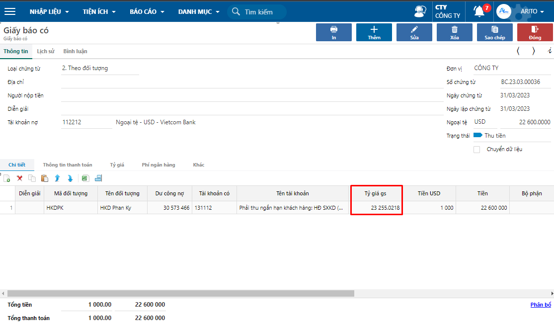 Nếu không check: Lúc này hệ thống sẽ hạch toán theo tiền ở chi tiết. Cuối kỳ chạy tỷ giá ghi sổ, hệ thống sẽ không áp lại tỷ giá nhưng vẫn sẽ hạch toán sổ cái theo tỷ giá mới.