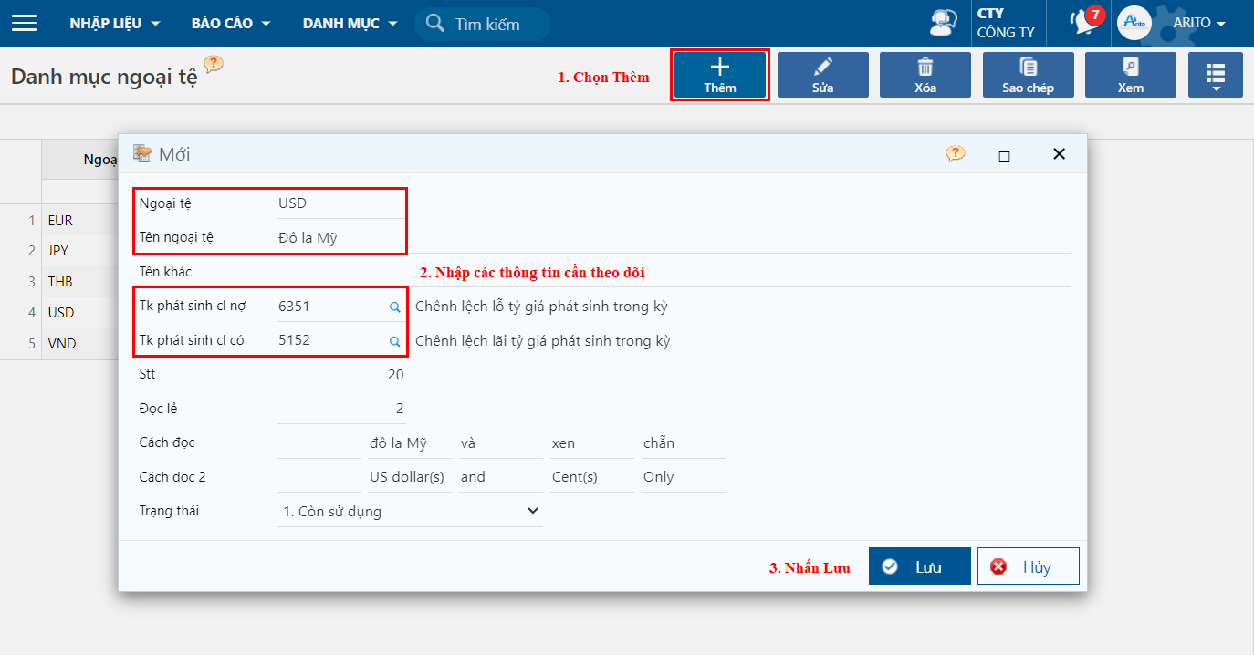 Đường dẫn: ***Danh mục/ Kế toán/ Ngoại tệ***