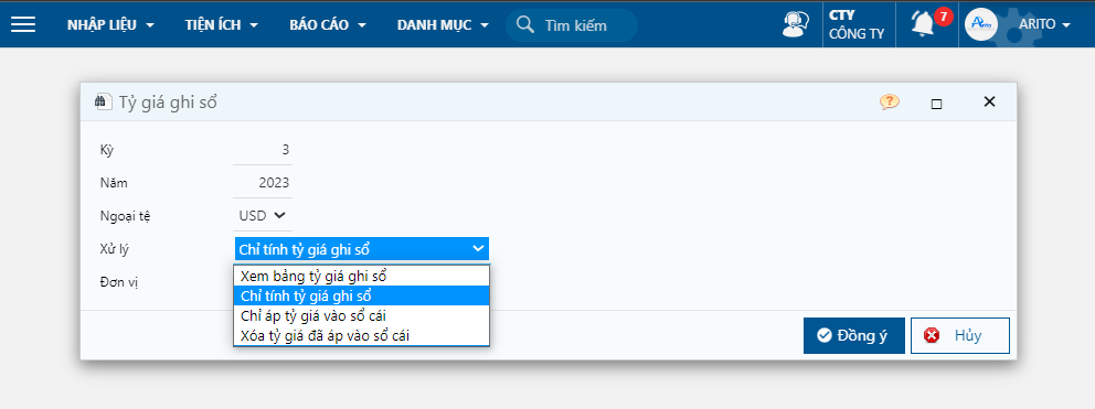 Hướng dẫn thao tác tính tỷ giá ghi sổ cuối kỳ.